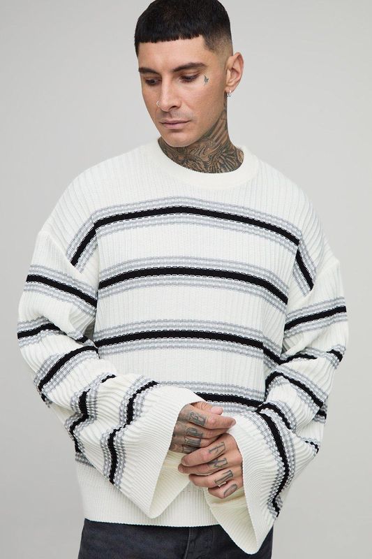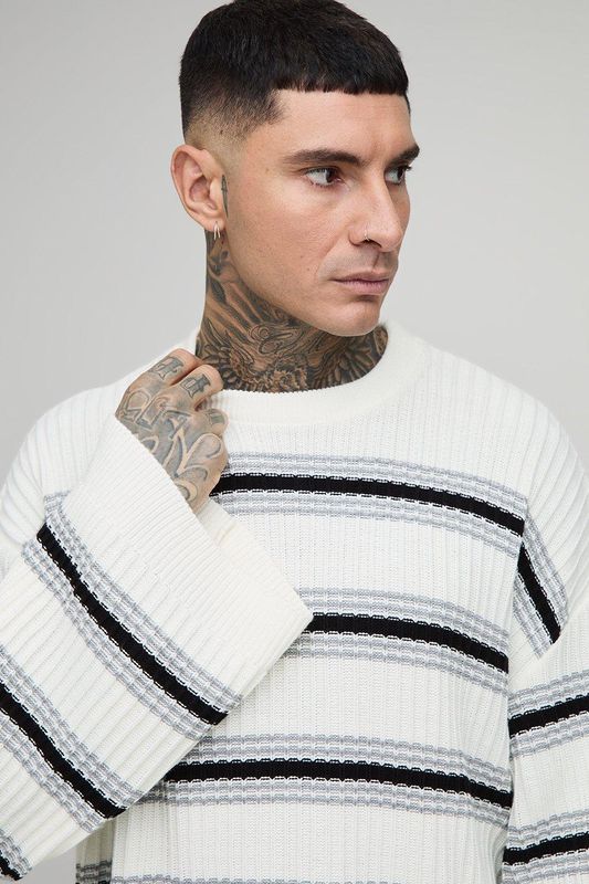 Tall Ribbed Knit Wide Sleeve Boxy Oversized Jumper