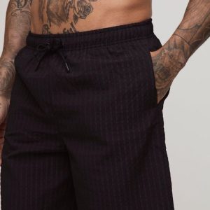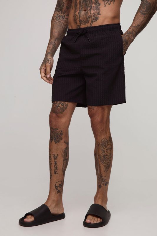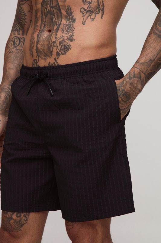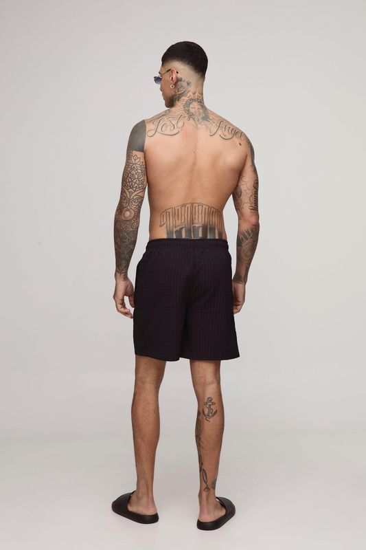 Tall Seersucker Plaid Mid Length Swim Trunks