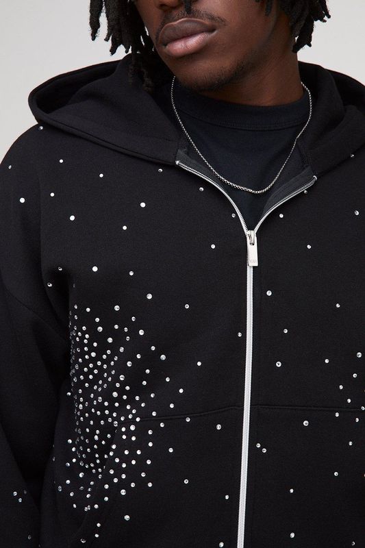 Tall Shrunken Rhinestone Zip Through Hoodie