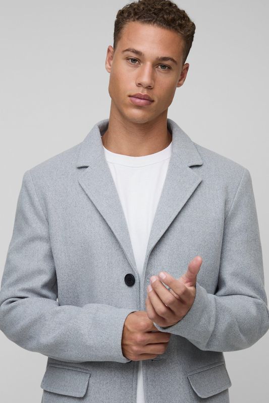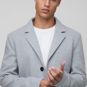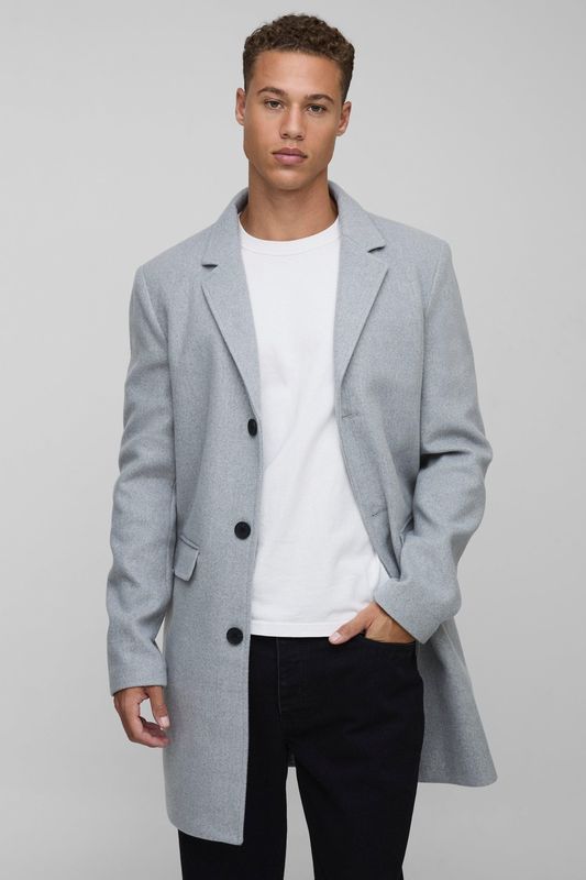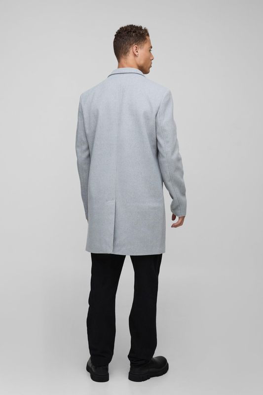 Tall Single Breasted Wool Look Overcoat in Grey