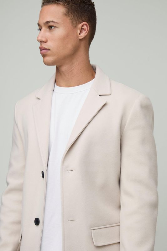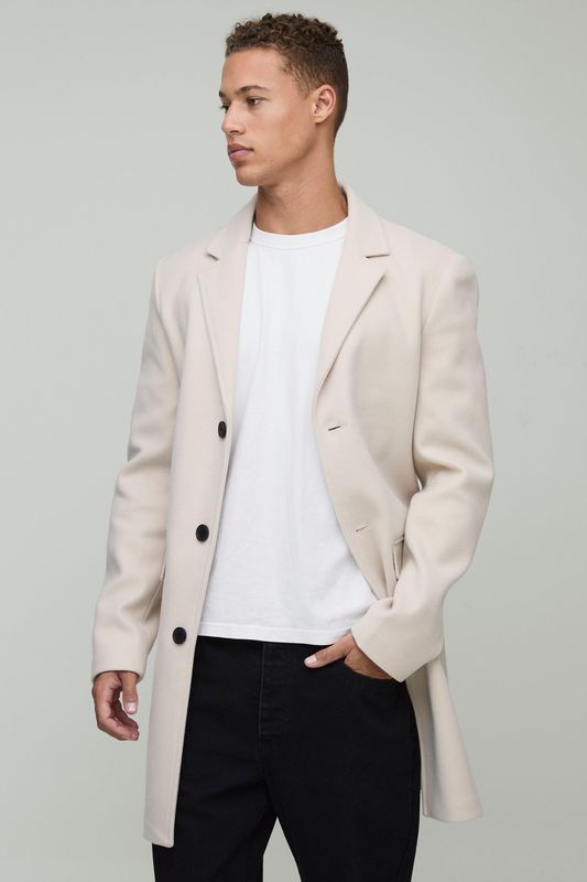 Tall Single Breasted Wool Look Regular Fit Overcoat in Beige