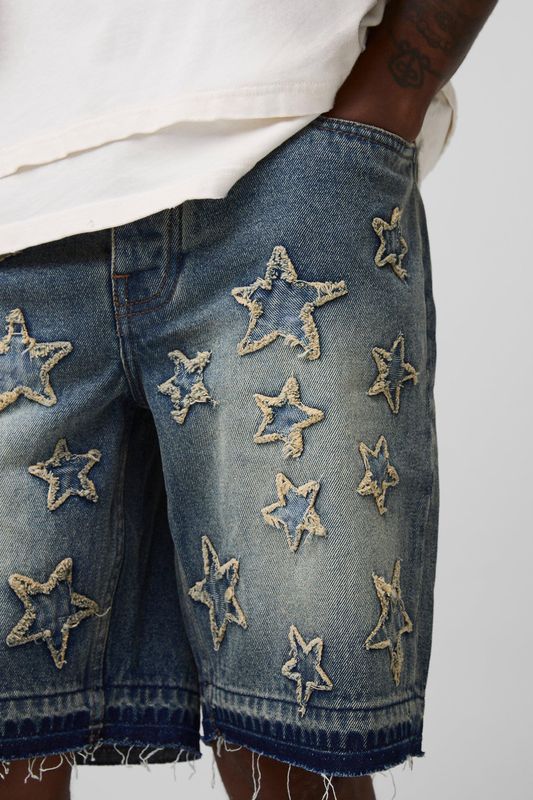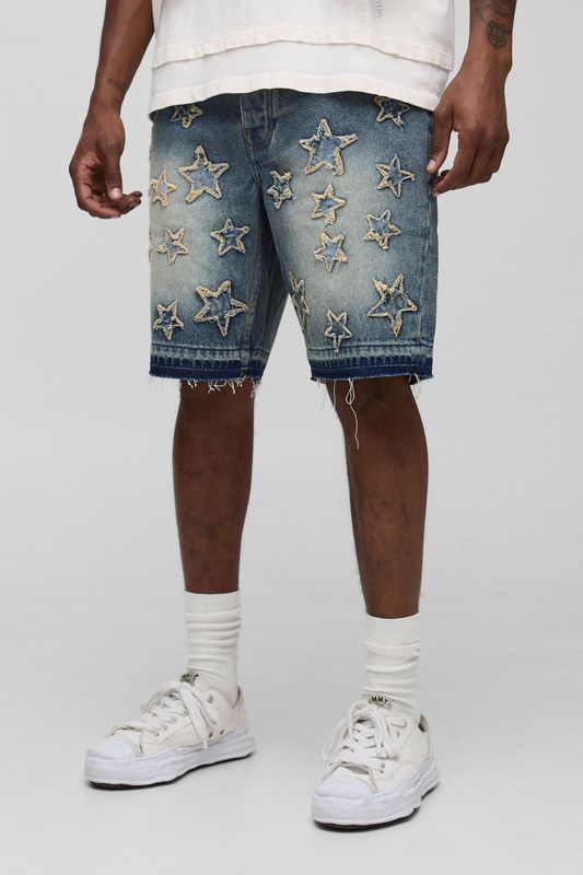 Tall Slim Fit Star Applique Let Down Hem Denim Shorts