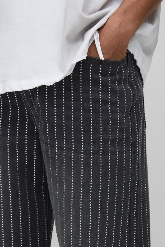 Tall Stripe Rhinestone Relaxed Fit Jeans