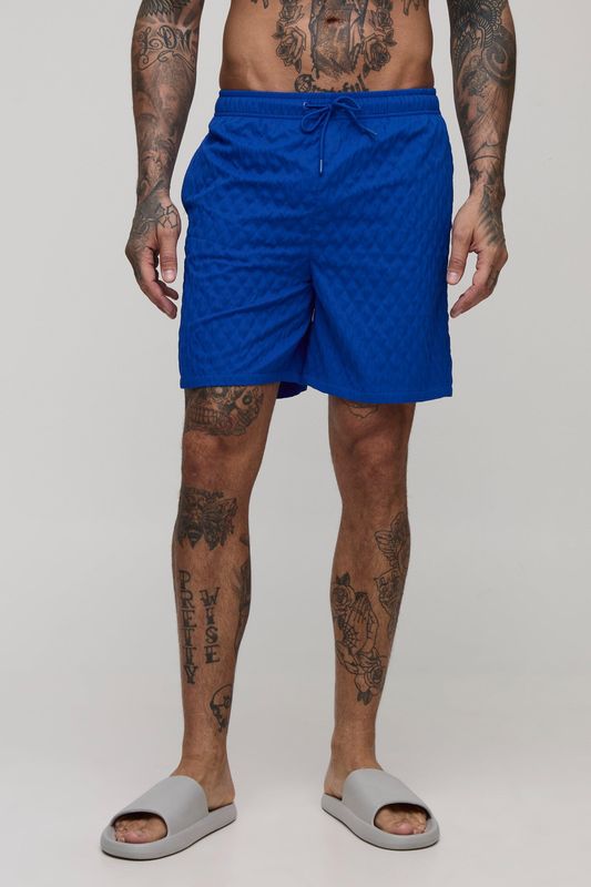 Tall Textured Mid Length Swim Trunks