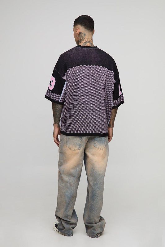 Tall Oversized Boxy Moto Jacquard Knitted Long Sleeve T-Shirt