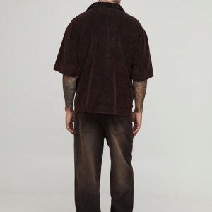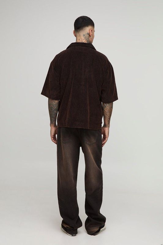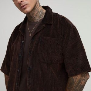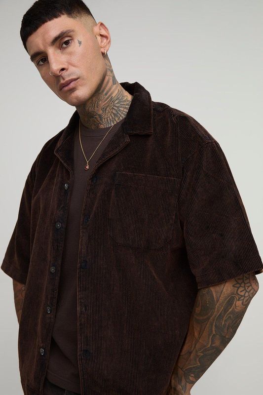 Tall Washed Cord Boxy Oversized Revere Collar Shirt