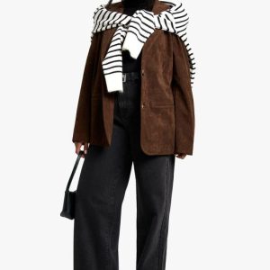 Vintage Look Faux Suede Relaxed Fit Blazer