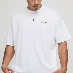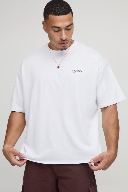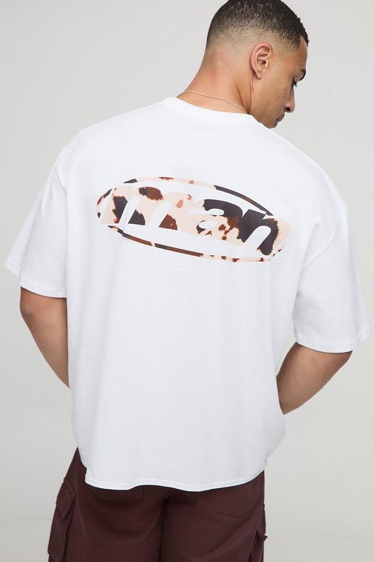 White Oversized Boxy Cow Print Man Oval Graphic T-Shirt