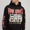 Black Oversized Extended Neck Slot Machine Long Sleeve Printed T-Shirt