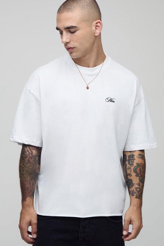 White Oversized Extended Neck Ofcl Man Gothic Rhinestone T-Shirt