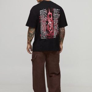 Black Oversized Extended Neck Slipknot License Printed T-Shirt