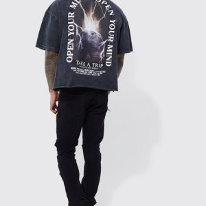 Charcoal Oversized Shrunken Boxy Washed Cross Graphic T-Shirt