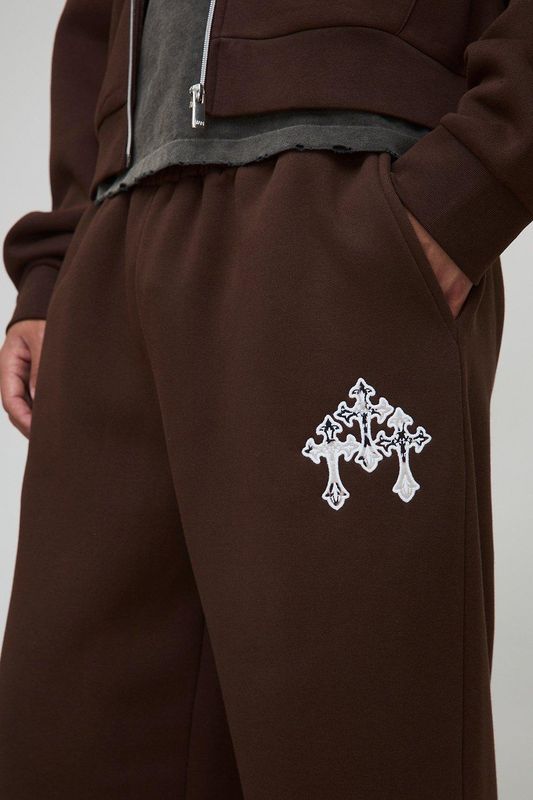 Wide Leg Cow Print Cross Applique Joggers