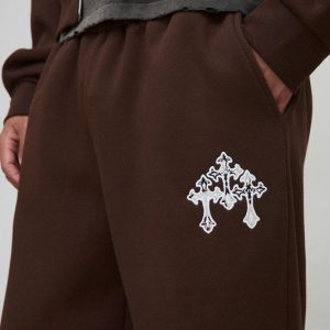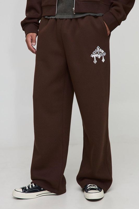 Wide Leg Cow Print Cross Applique Joggers